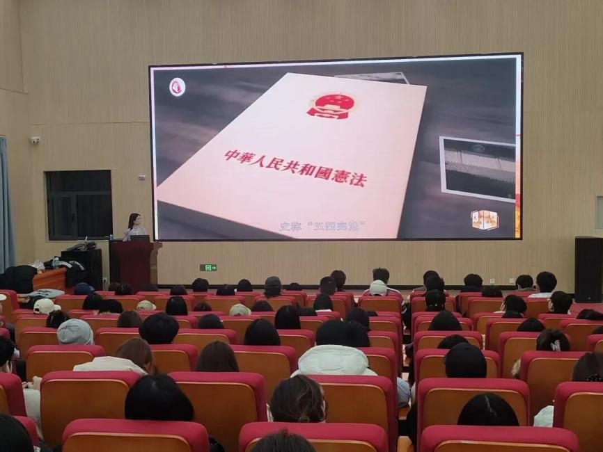 活动现场,主持人为同学们播放了一段视频,同学们跟随镜头,清晰了解了我国宪法的历史以及宪法在我国的地位。在讲座中,主持人为同学们细致的讲解了宪法具体是如何保护我们合法权益的,使同学们认识到,在学习中不仅要学好书本知识,还要提高自身的道德修养和法律认知,要学会运用法律武器维护自身合法权益,做一个有知识,有道德,守法爱国的好公民。